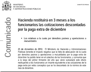 CCOO solicitó el 12 de febrero la dimisión del ministro Montoro por su nefasta gestión en el Ministerio de Hacienda, porque en vez de luchar contra los defraudadores les premia con una amnistía fiscal, porque en vez de perseguir a los que no cumplen con sus obligaciones fiscales, estafando así a la sociedad, castiga a toda población aumentado el IRPF y el IVA; porque para justificar a los corruptos hace manifestaciones como que "estos fenómenos no son exclusivos de España" ¡sin ningún tipo de rubor!; porque el 25 de diciembre anunció a bombo y platillo que "Hacienda restituirá en 3 meses a los funcionarios las cotizaciones descontadas por la paga extra de diciembre" y resulta que es mentira, pues no hará tal devolución en este primer trimestre de 2013 sino que lo hará en la nómina de abril y mediante apropiación indebida de alguna o algunas partidas destinadas a las mutualidades de personal funcionario.